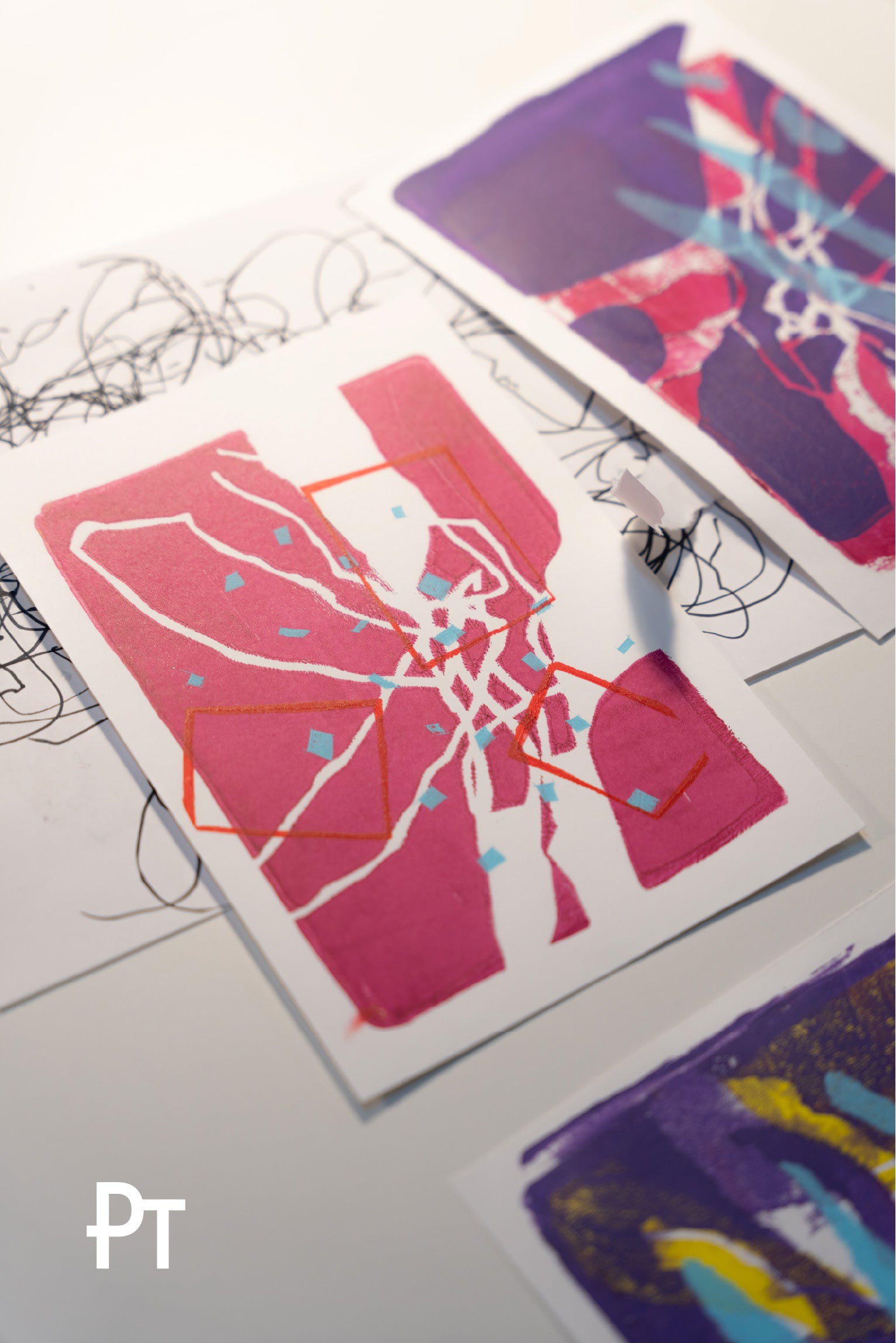 Tijdens deze workshop leer je de basisprincipes van gel printing, waarbij je speelt met verschillende tools, texturen en kleuren om je eigen kunstwerk te maken. Onder mijn begeleiding: