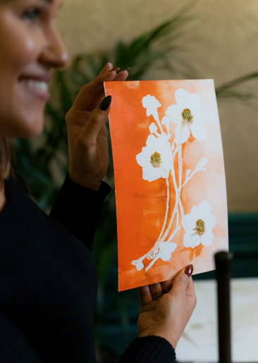 Direct drukken met echte planten. Je speelt met kleur, compositie en druk, en ziet hoe eenvoudig materiaal krachtige beelden kan opleveren.
